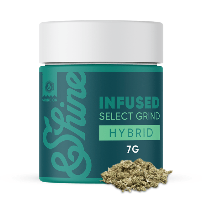 &Shine Infused Select Grind offers a combination of lightly ground flower and cured crumble concentrate for an intensified experience across a variety of Hybrid strains. A shining value for quality and versatility.